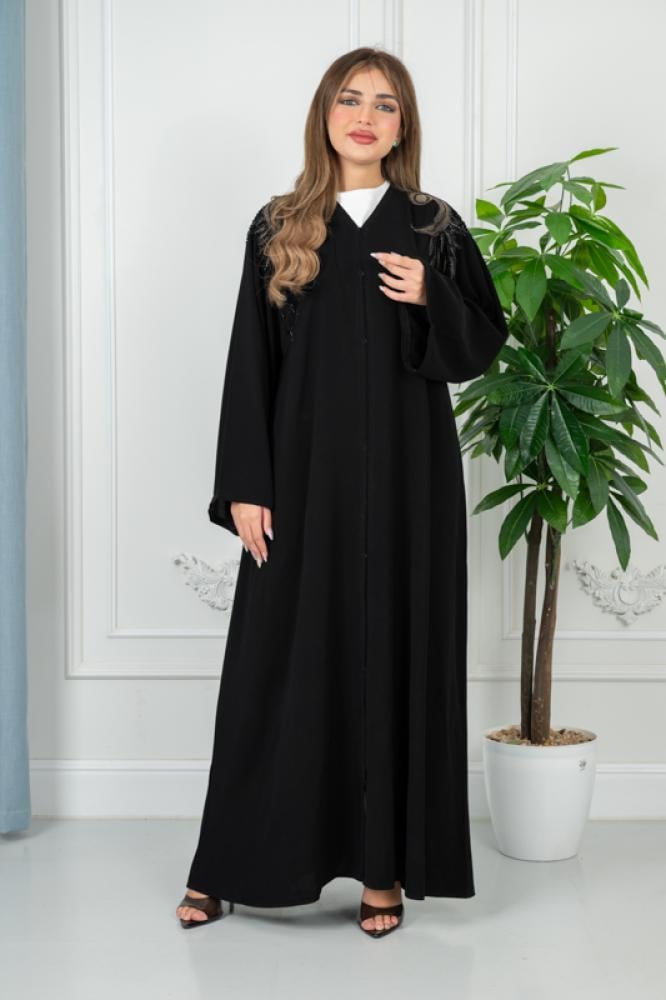 نقدم لكِ عباية سوداء تجمع بين الفخامة والبساطة في آنٍ واحد. هذه العباية مصممة لتناسب جميع الأذواق وتمنحك إطلالة أنيقة وراقية سواء في المناسبات الخاصة أو الحياة اليومية.