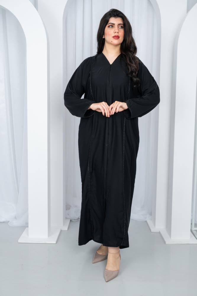 نقدم لكِ عباية سوداء تجمع بين الفخامة والبساطة في آنٍ واحد. هذه العباية مصممة لتناسب جميع الأذواق وتمنحك إطلالة أنيقة وراقية سواء في المناسبات الخاصة أو الحياة اليومية.