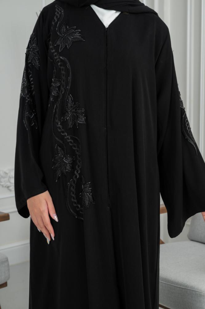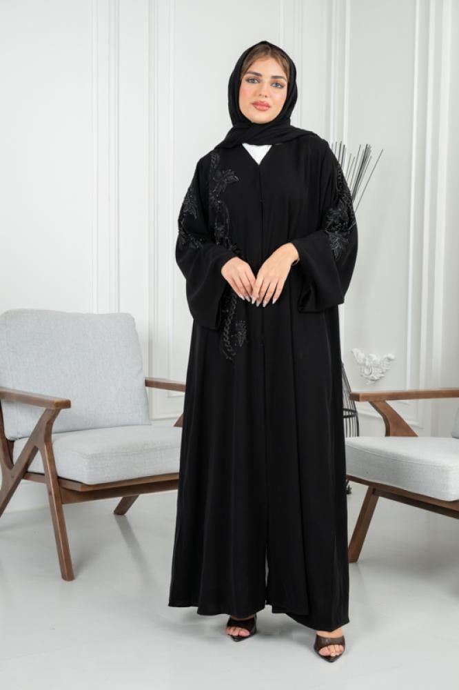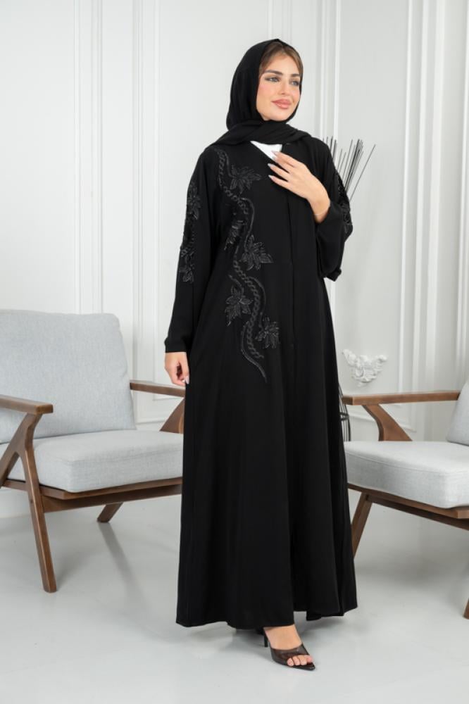 نقدم لكِ عباية سوداء تجمع بين الفخامة والبساطة في آنٍ واحد. هذه العباية مصممة لتناسب جميع الأذواق وتمنحك إطلالة أنيقة وراقية سواء في المناسبات الخاصة أو الحياة اليومية.