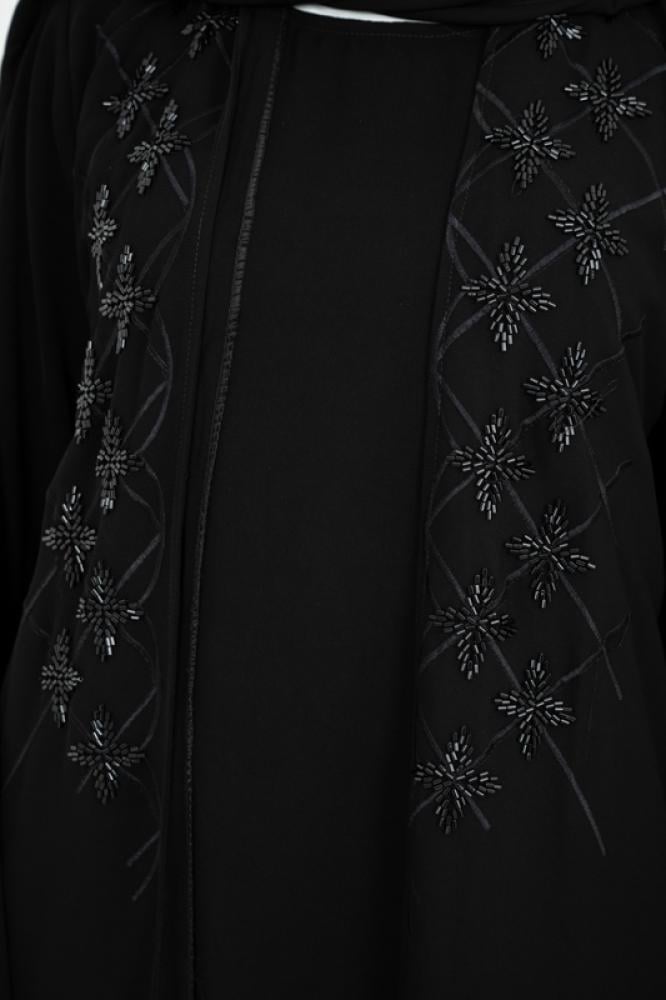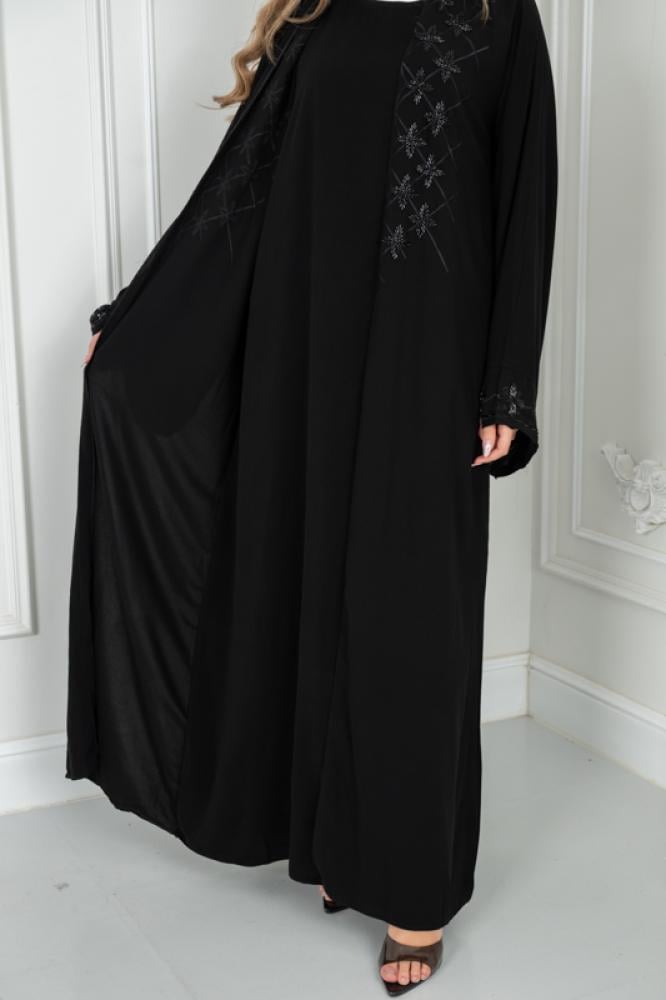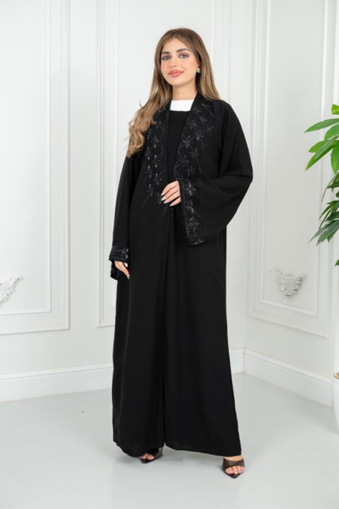 نقدم لكِ عباية سوداء تجمع بين الفخامة والبساطة في آنٍ واحد. هذه العباية مصممة لتناسب جميع الأذواق وتمنحك إطلالة أنيقة وراقية سواء في المناسبات الخاصة أو الحياة اليومية.